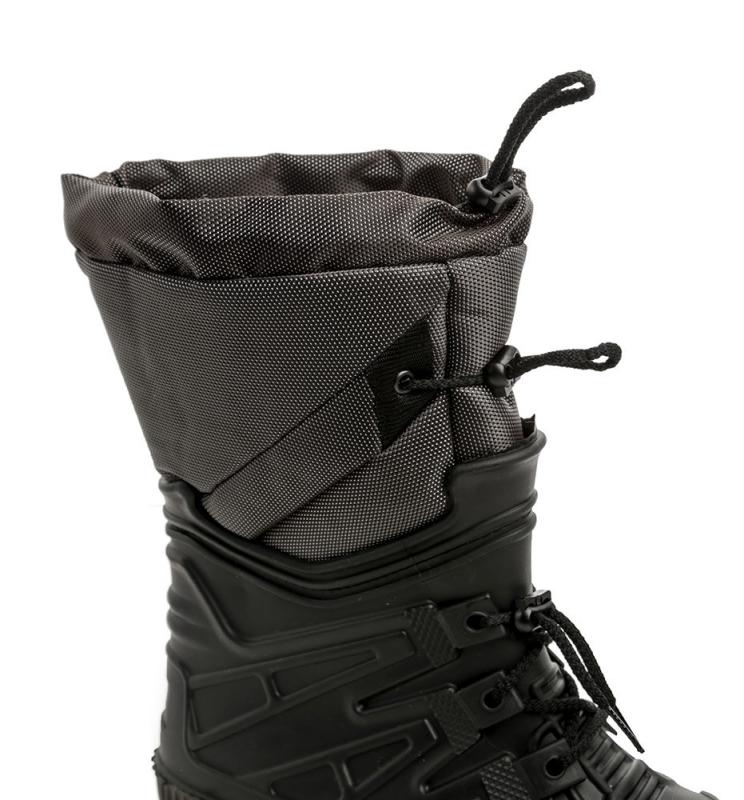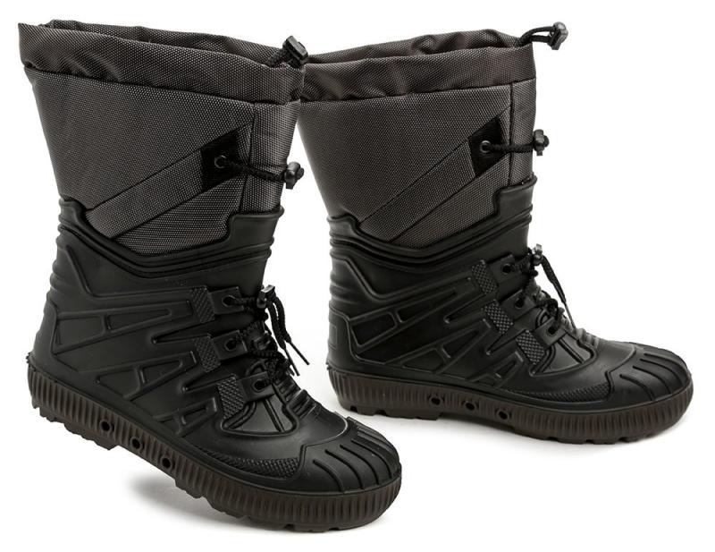 Obuv je vyrobená z kombinácie syntetického a textilného materiálu. Vnútorná časť obuvi je vybavená textilným chlpatým kožušíkom, ktorý tvorí zateplenie. Spodná časť obuvi je celá z jedného odliatku, ktorý zabezpečuje vodotesnosť. K spodnému odliatku je prišitý vrchný nádstavec so zateplením.