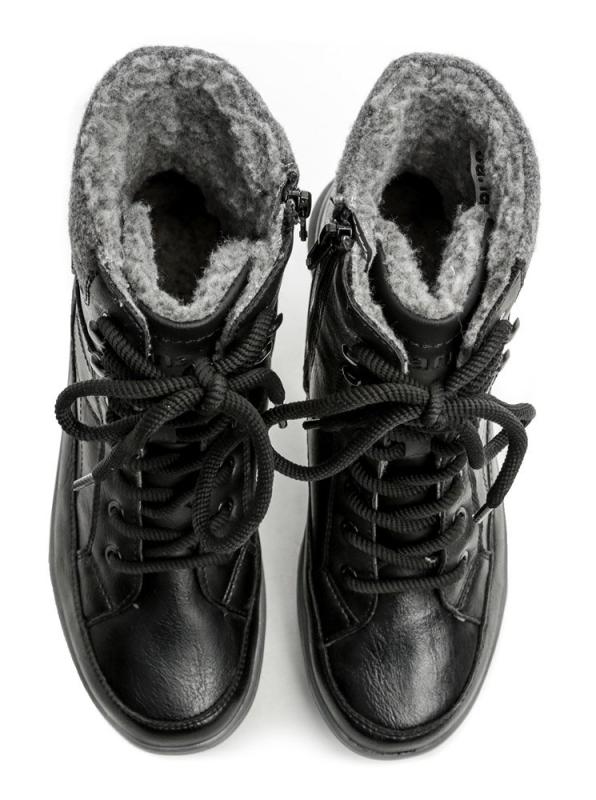 Svršek obuvi je vyrobená z kombinace syntetického a textilního materiálu. Vnitřní část obuvi je vybavena chlupatým textilním kožíškem, který tvoří zateplení.
