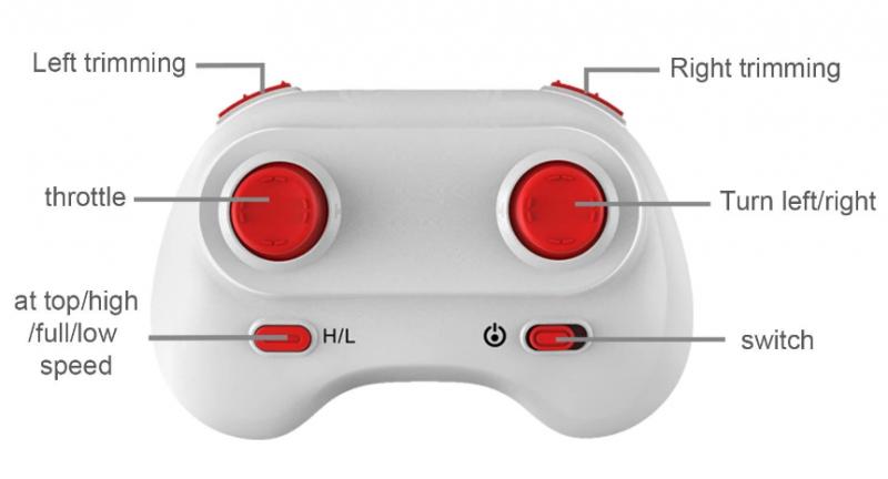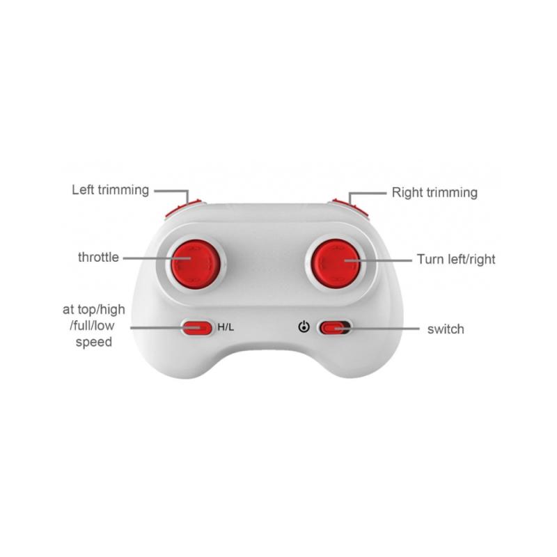 Vzlétnout lze z ruky, prostě ho vyhodíte do vzduchu a pomocí velmi jednoduchého ovladače pilotujete. V udržení směru a stability vám dopomáhá vestavěný gyroskop. Dálkové ovládání funguje na frekvenci 2,4 GHz, dosah je dokud ho uvidíte a možná i až ho neuvidíte, uvádí se více jak 150 m.