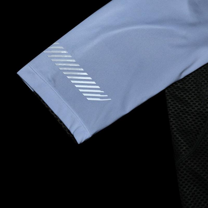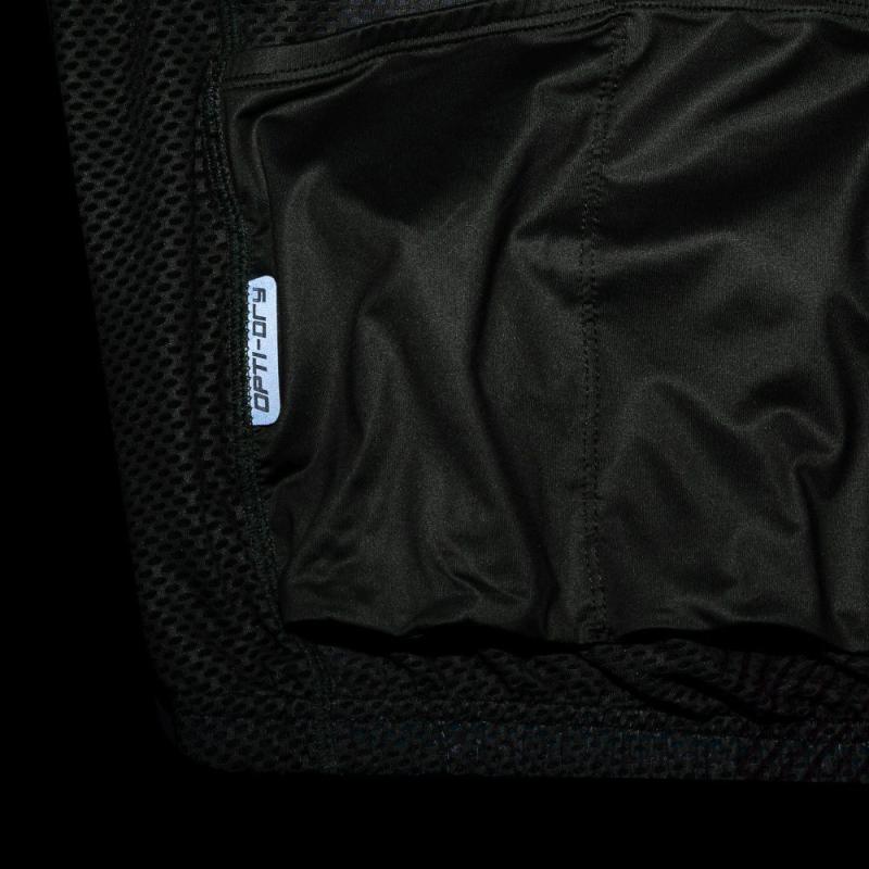 Navyše na chrbte, v bokoch a podpazuší je použitý ľahký vzdušný sieťovaný materiál, ktorý ešte viac odľahčuje konštrukciu a ponúka vysokú priedušnosť. Predĺžený zadný diel je zakončený gumou so silikónovým potlačou proti shrnovaniu. Delená zadná kapsa a bočná zipsová kapsička pojmú všetko dôležité, čo cyklista potrebuje počas jazdy. Reflexné prvky sú umiestnené na rukávoch a zadnom diele.