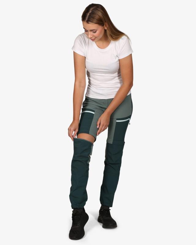 Jsou vyrobeny z materiálu SIBERIUM, který je velmi lehký, prodyšný a vysoce elastický. Jejich největším přínosem je možnost odepnutí nohavic nad koleny, takže z kalhot uděláte snadno kraťasy. Tato funkce je velmi praktická na cesty nebo celodenní výšlapy. Oblast kolen a hýždí je zesílená ripstopovým materiálem, odolnějším vůči oděru. Kalhoty mají čtyři zipové kapsy, klasické zapínání s poutky na pásek. Lemy nohavic mají ukončení do gumy a kovový háček, pomocí kterého připevníte nohavice na turistickou obuv. Kilpi HOSIO-W nabízíme v několika stylových barvách.