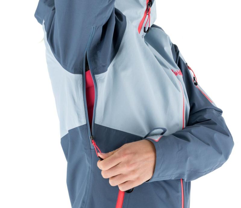 Bunda je celorozepínatelná s dvojitým zipem a disponuje dvěmi velkými předními kapsami a jednou malou kapsičkou na levém rukávu uzavíratelné na zip. Kapuce je stahovatelná po obvodu i vzadu na zátylku pomocí gumiček. V podpaží naleznete rozepinatelné odvětrávání na dvojitý zip. Na komfortu přídá i vnitřní lem v oblasti krku z příjemného fleecového materiálu a zakončení rukávu suchým zipem na stáhnutí. Bundu využiijete celoročně na horských túrách i jako nepromokvou variantu při toulkách v přírodě.