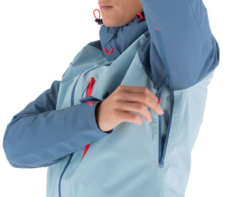 Je vyrobena z vysoce kvalitního membránového materiálu DERMIZAX, který zaručuje její voděodpudivost, prodyšnost a lehkost. Díky voděodolným podlepeným švům a zipům se k vám nedostane ani kapka vody. Bunda disponuje ventilačními zipy v podpaží a souborem pěti kapes pro uložení všech potřebných dokladů a věcí. Za účelem pohodlí a bezpečnosti má větší nastavitelnou kapuci s kšiltem opatřeným prvkem RECCO pro lepší dohledatelnost záchranáři. Velikost si na míru upravíte utažením gumičkou u spodního lemu bundy i u jejich rukávů.