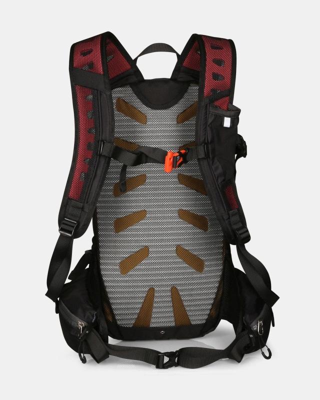 Hlavní kapsa obsahuje přihrádku na vodní vak (není součástí batohu), na vrchním víku najdete kapsu na brýle, po stranách jsou síťované kapsy na půllitrové lahve, a přední část batohu je vybavena zipovou přihrádkou na drobnosti.