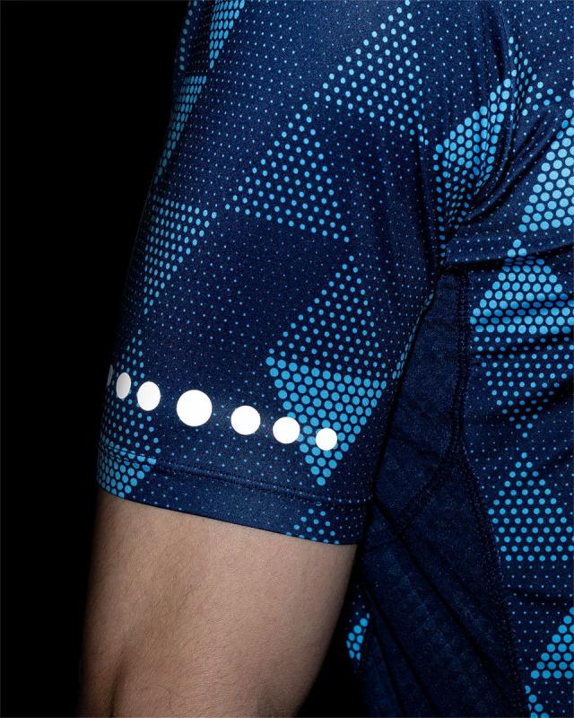Dres ma nízký límeček, krátké rukávy do půl paže a spodní lem se silikonovým potiskem proti vyhrnování. Na zádech je umístěna prostorná dělená kapsa a malá kapsička na zip z boční strany. Reflexní prvky na zádech, rukávech a bocích jsou dobře viditelné ve tmě.