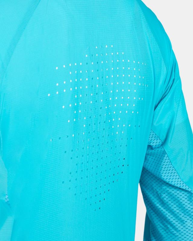 Celková hmotnosť bundy je iba 90 gramov vo veľkosti 36. Bundu ľahko zbalíte do bočného vrecka. V podpazuší a na bokoch je použitý tenký sieťovaný materiál, ktorý spolu s mikroperforáciou na chrbte zaručuje maximálnu priedušnosť. Vysoký golier je z vnútornej strany vystlaný rýchloschnúcim materiálom, ktorý dobre odvádza pot. Bunda má predĺžené rukávy s manžetou na palec a otvorom na hodinky. Predný zips s krytkou brady je dvojcestný a poslúži k lepšiemu odvetrávaniu. Voľnejší strih vás nebude obmedzovať v pohybe. Lem rukávov a spodný lem pekne priliehajú. Na chrbte je použitá laserom rezaná mikroperforácia. Samozrejmosťou u produktov Kilpi sú výrazné reflexné prvky. Kilpi TIRANO-W je na výber z viacerých farebných variant.
