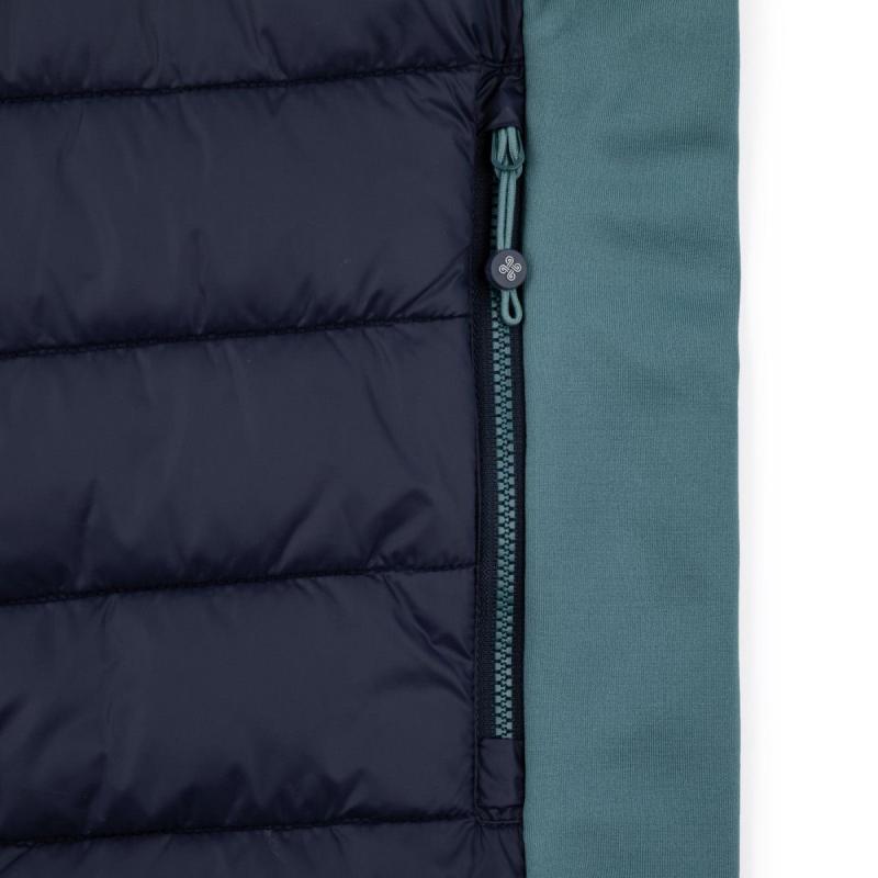 Konstrukce a rozložení jednotlivých materiálů je řešeno s ohledem na maximální funkčnost. Základem je zateplená část lehkou syntetickou výplní Primaloft s lepenými panely na břiše, zádech a ramenou. Tyto zateplené části pomáhají udržovat vlastní teplo a chrání před chladem zvenčí. Vnější materiál je ošetřen zátěrem DWR. Část rukávů a boční vsadky jsou vyrobeny z elastického hřejivého fleecu, který nabízí neomezenou volnost při pohybu. Vrchní strana rukávů z elastického membránového softshellu neprofoukne a brání úniku vlastního tepla. Zateplená kapuce se stahováním je dostatečně prostorná pro nasazení na přilbu. Velkou vychytávkou jsou odepínací rukávy, které lze jednoduše odepnout a vy tak získáte praktickou lehkou vestu s krátkým rukávem. Prodloužený rukáv je navíc ukončen manžetou s otvorem palec. Ve výbavě bundy nechybí dvě zipové kapsy a reflexní loga. Kilpi VERONS-M doporučujeme na sportovní aktivity s vyšší intenzitou pohybu, do chladnějšího počasí jako například běžky, běh, skialpové výšlapy nebo turistiku.