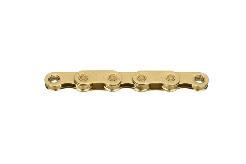 - Řetěz je opatřen povrchovou úpravou Gold Titanium Nitride, která zajišťuje vyšší odolnost proti opotřebení i korozi, hladší chod a atraktivní zlatý vzhled.
