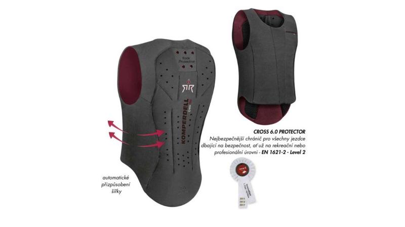 Srdcem vesty je vícevstvý chránič zad Cross 6.0 z adaptivní pěny s dvojitou hustotou, která efektivně rozkládá nárazy a splňuje přísnou bezpečnostní normu EN 1621-2 Level 2. Tato norma zaručuje vysokou úroveň ochrany páteře, což je zásadní pro bezpečnost při jezdectví.