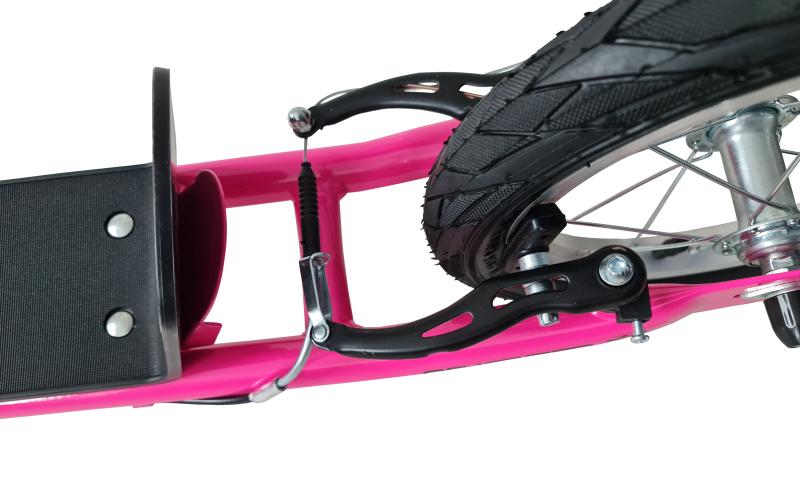Stupátko o délce 32 cm je opatřeno protismykovou úpravou, která zvyšuje bezpečnost při jízdě. Zadní brzda umožňuje jednoduché a efektivní zastavení koloběžky.