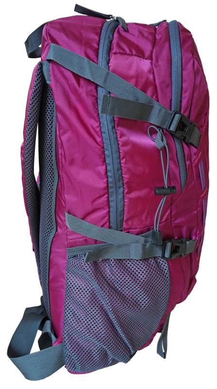 - Komory a vrecká: Dve hlavné komory s obojstrannými zipsami pre jednoduchý prístup, dve sieťované vrecká na stranách pre fľaše s vodou, predné otvorené vrecko a ďalšie úložné priestory vrátane špeciálnych vnútorných vreciek s pružinkami pre drobnejšie predmety.