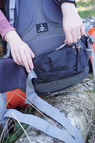 - Nosný systém: Široké, polstrované, výškově nastavitelné ramenní popruhy a hrudní a bederní pásy s maximálním obvodem 150 cm zajišťují pohodlné nošení.
