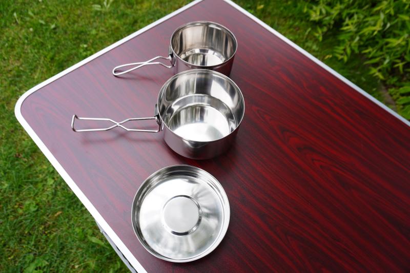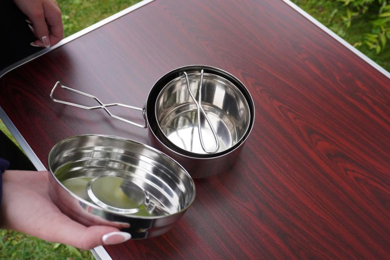 Táto trojdielna kempingová sada riadu zahŕňajúca ešusy je vynikajúcou voľbou pre všetkých milovníkov outdooru, ktorí uprednostňujú ľahkosť a funkcionalitu. Sada obsahuje základný ešus s objemom 1,4 litra a priemerom 15 cm, menší ešus s objemom 1 liter a priemerom 13 cm, a univerzálnu pokrievku s priemerom 15 cm, ktorá pasuje na oba ešusy.Vyrobená z nehrdzavejúcej ocele, sada garantuje dlhú životnosť a odolnosť proti korózii a poškodeniu. Celková hmotnosť iba 480 g a kompaktné rozmery 16x11 cm z nej robia ideálnu voľbu pre turistov a horolezcov, ktorí chcú na svojich cestách šetriť každý gram hmotnosti. Držiak a praktická západka na pokrievke zabezpečia, že sa sada pri preprave nerozloží, čo zvyšuje jej prenosnosť a jednoduché skladovanie.