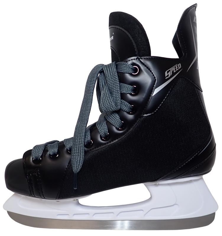 • korčule spĺňajú základné požiadavky na kvalitu - topánka je pevná s kvalitným polstrovaním vo vnútri, má plastovú špičku proti úderom pukom a nôž je tvrdý, ale umožňuje ostré brúsenie pre hru hokeja
