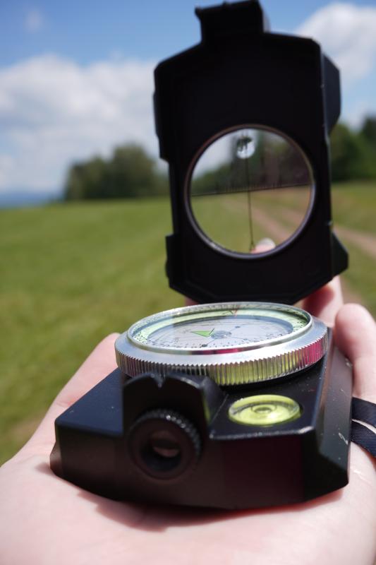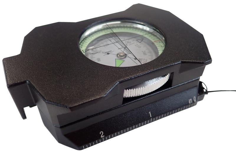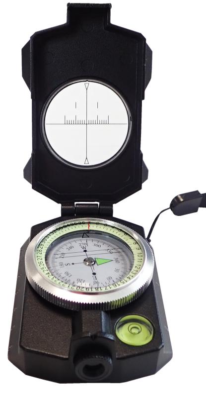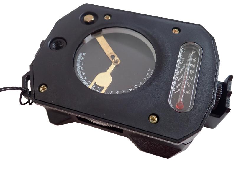 - Funkce: Měření výšky a sklonu terénu, průzorový hledáček pro přesné zaměření azimutu.