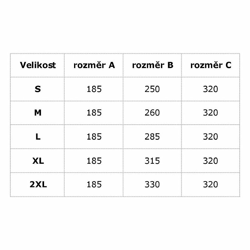 | Tabulka velikostí: | |