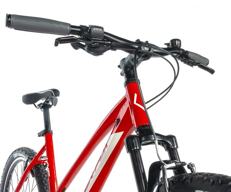 Pláště CST 26x2.10 zajišťují stabilitu a dobrou přilnavost na různých površích, což ocení každý začínající i pokročilejší jezdec. Kolo je vybaveno systémem 1×8 rychlostí, který pokrývá většinu situací v terénu a umožňuje intuitivní a snadné řazení.