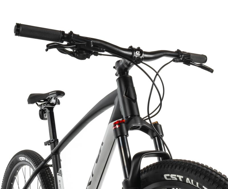 Přední odpružená vidlice s pružinou a zdvihem 100 mm účinně tlumí nárazy a nerovnosti, což zvyšuje komfort jízdy i na hrubším povrchu. Středně široké pláště CST 27x2,10 zajišťují dobrou trakci a stabilitu v různých podmínkách, takže jízda zůstává plynulá a bezpečná.