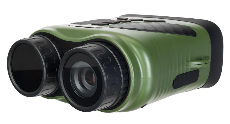 Binokulární dalekohled s nočním viděním, rozsah 250–300 m, 10x optické zvětšení, 1–8x digitální zoom, skleněné optické prvky, displej, videorekordér pro záznam fotek a videí, lehké tělo, možnost upevnění na stativ. Zobrazit celý popis