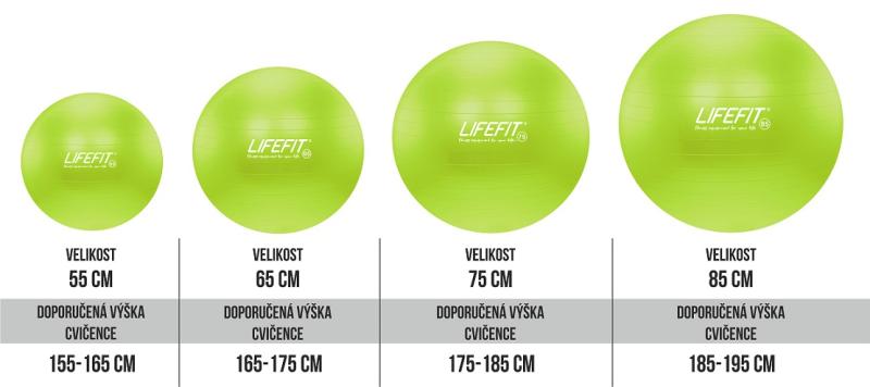 Gymnastická lopta LIFEFIT ANTI-BURST 75 cm je lopta z rady profesionálnych gymnastických lôpt. Lopta LIFEFIT 75 cm je vyrobená z vysoko pevného a odolného PVC materiálu s nosnosťou 200 kg. Protišmyková ochrana povrchu a systém ANTI-BURST (pomalé uvoľňovanie vzduchu v prípade pretlaku) zabezpečuje vysoký stupeň bezpečnosti a zdravia cvičenca Séria gymnastických lôpt LIFEFIT je vyrábaná v niekoľkých veľkostiach a farbách. Lopty LIFEFIT sú vhodné pre všestranné využitie pri fitness, kardio a rehabilitačných cvičeniach. Lopty sú určené pre komerčné aj súkromné využitie.