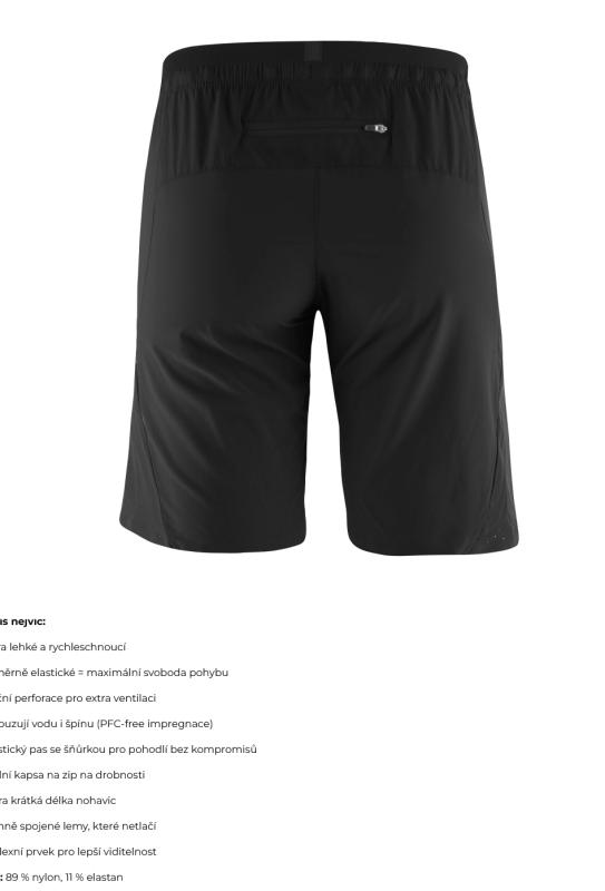 Lehkost, rychlé schnutí, skvělá ventilace a vodoodpudivost jsou hlavní přednosti, které ocení běžci i sportovci hledající spolehlivé a pohodlné oblečení. Elastický pas a praktické kapsy přidávají na komfortu a použitelnosti. Reflexní prvky pak zvyšují bezpečnost při pohybu za zhoršených světelných podmínek.