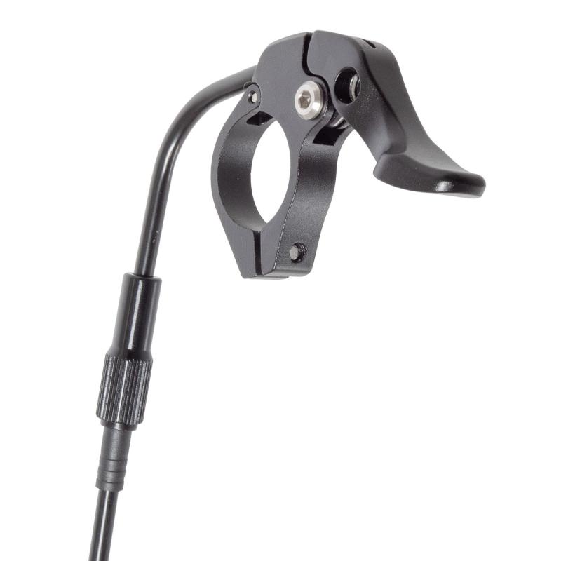 Pneumatická teleskopická sedlovka umožňuje plynulé nastavenie výšky až o 110 mm počas jazdy pomocou páčky na riadidlách, vhodná pre jazdcov do 100 kg.
