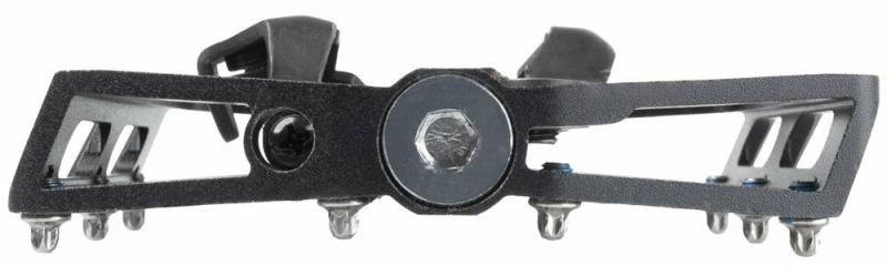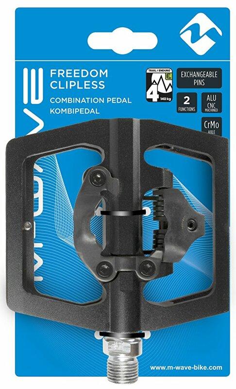 Platformové pedály M-Wave kombinovéné s nacvakávacím pedálem s možností použití kufrů SPD. Zobrazit celý popis
