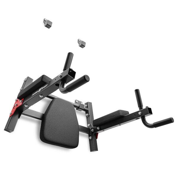 Vzdálenost úchytů bradel je 43, nebo 47 cm a můžete si je tak nastavit do ideální pozice. Jejich upevnění je zajištěno jedním šroubem, takže přenastavení Vám zabere jen pár vteřin. Polstrování je vyrobeno z hrubšího materiálu a je tak maximálné odolné vůči poškození, jako výplň je použita pěna o hustotě R90, tato vyší hustota zaručuje pohodlí pro lokty během přítahů kolen.