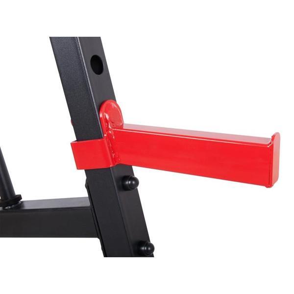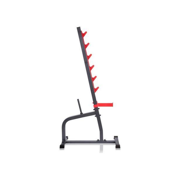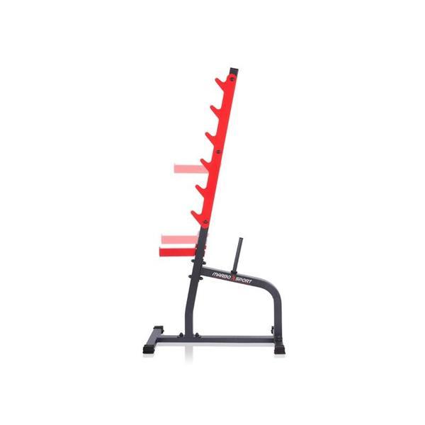 Robustné stojany z kvalitnej ocele s nosnosťou 300 kg, vybavené praktickými zarážkami a tŕňmi na závažie pre lepšiu organizáciu počas cvičenia. zobraziť celý popis