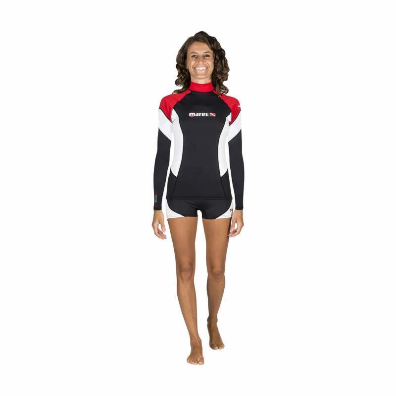 Rashguard v dámskom strihu ponúka pohodlie, ochranu a skvelý vzhľad. Lycra sa hodí pod neopren alebo ako samostatná vrstva pri šnorchlovaní, potápaní či paddleboardingu. Dámske tričko Mares s UV ochranou 50+ vás spoľahlivo ochráni proti slnečnému žiareniu po celý deň. Lycrové tričko svojím strihom a plochými švami zabraňuje odieraniu a zabezpečuje maximálny komfort.