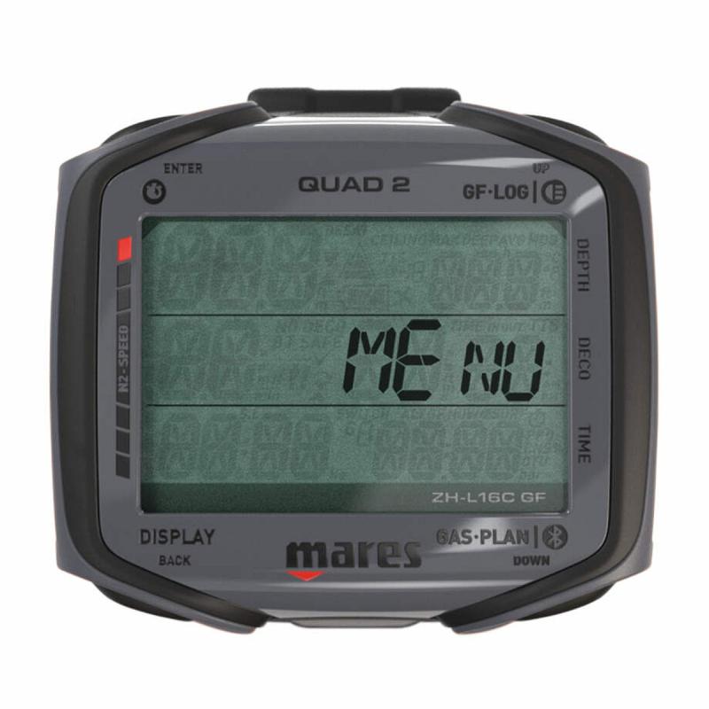 Mares QUAD 2 je potápěčský počítač s možností využívat více plynů. Samozřejmostí je také plánovač ponorů s doplňkovou funkcí povrchových intervalů a dlouhá životnost baterie, která je uživatelsky vyměnitelná.