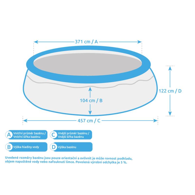Tolerance rozměrů je stanovena na 5 % a může být ovlivněna rovností podkladu, objemem napuštěné vody či nafouknutím límce.