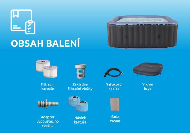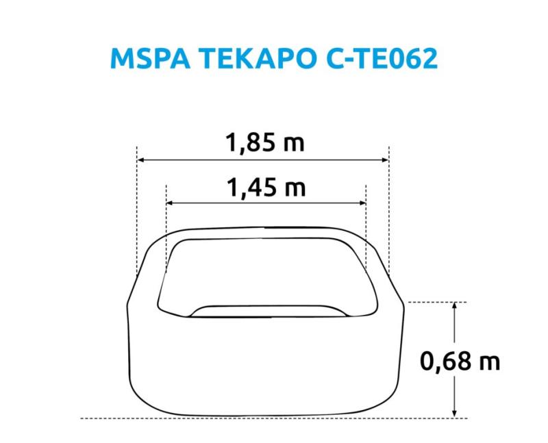 Velká nafukovací vířivka až pro 6 osob. MSpa Tekapo C-TE062 má praktický tvar a bezvadně padne na jakoukoli terasu či zahradu.Výhodou je 132 vzduchových trysek a účinný ohřev vody. Uvnitř ovládací jednotky je zabudovaná mini sterilizační komora s UV LED lampou, která zajišťuje, že každá kapka vody v Mspa je pod neustálou ochranou.
