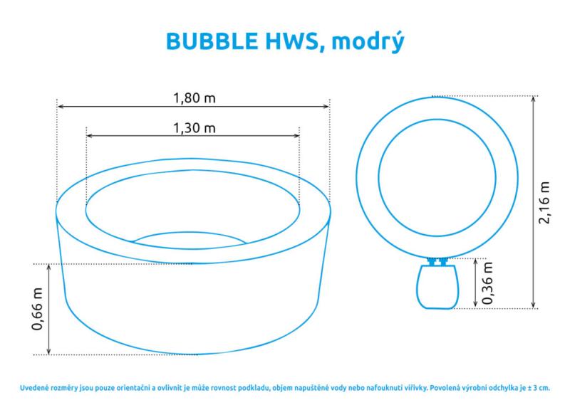 Vnější průměr: 180 cm (po naplnění vodou, tolerance ± 5%)