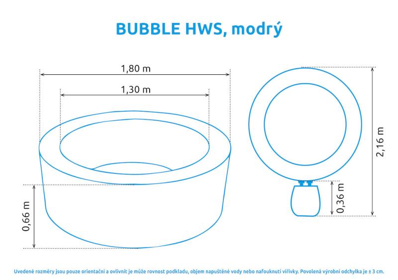 Vonkajší priemer: 180 cm (po naplnení vodou, tolerancia ± 5%)