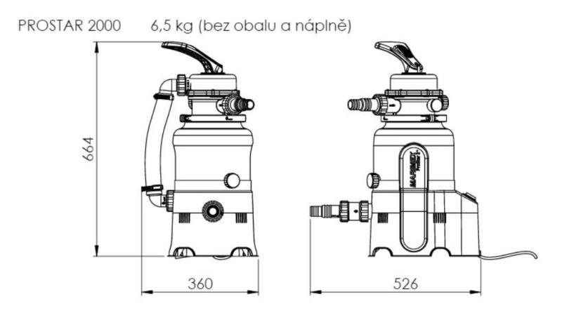 Písková filtrace Pro Star 2000 je určena pro bazény s objemem vody do 8m3. Má unikátní tvar a design nádoby se zabudovaným čerpadlem. Nádoba pojme 10 kg písku (zrnitost 0,6-1,2 mm). Filtrace vyžaduje minimální údržbu.• Parametry: