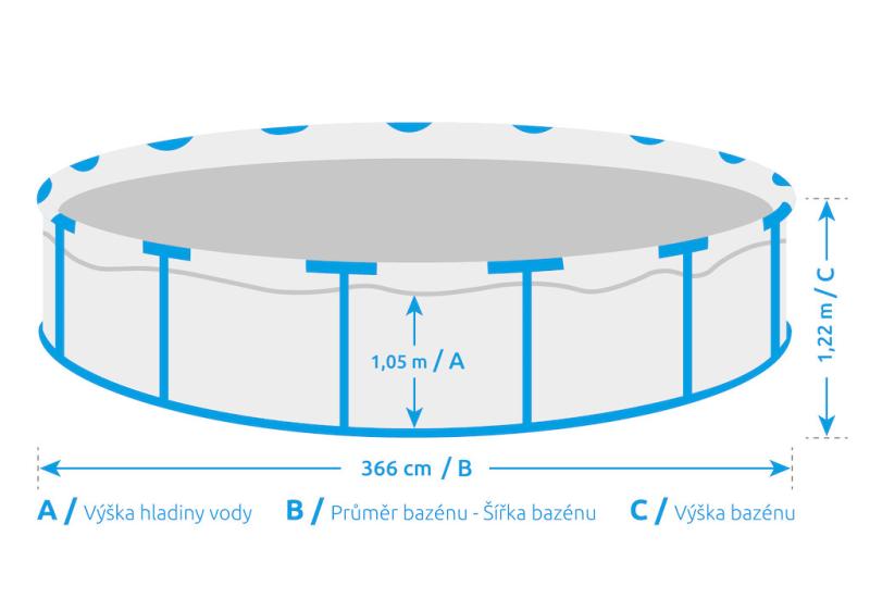 | Průměr bazénu | 3,66 m |