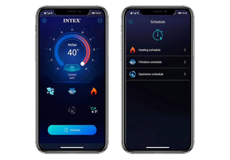 Vířivka mázabudovaný wi-fi modul, díky jeho propojenís mobilní aplikací z Google play / App storesi můžete všechny funkce a nastavení ovládat na dálku odkudkoliv. Dokonalou relaxační lázeň tak stihnete připravit ještě před Vaším příchodem.