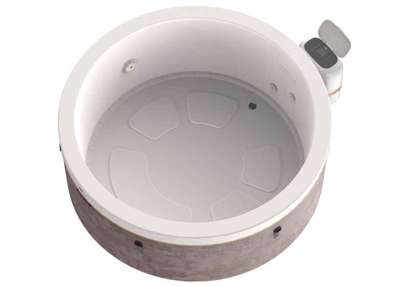 Robustní konstrukce vychází z 10 cm silných panelů z EPE pěny, která funguje jako tepelná izolace a chrání vodu před ztrátami tepla. Vana je vyrobena z perleťové pěny EPE s vysokou hustotou, což zajišťuje odolnost a dlouhou životnost materiálu. Design s textilem inspirovanou povrchovou úpravou přispívá k pocitu pohodlí a klidu během relaxace.