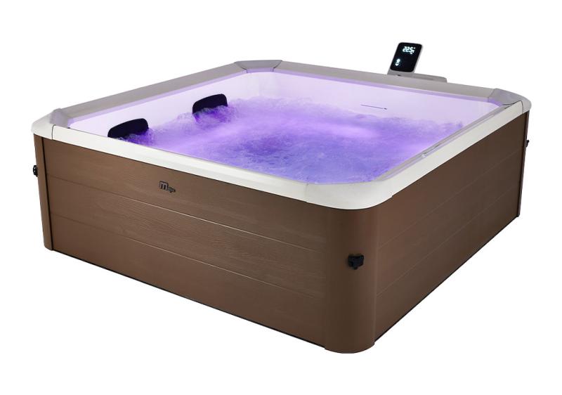 Vířivá vana nabízí pohodlný čtvercový tvar a dostatek prostoru pro až šest dospělých osob, což ji činí vhodnou pro rodinné i společenské využití. Díky kompaktním rozměrům snadno zapadne na terasu, zahradu nebo k stěně.
