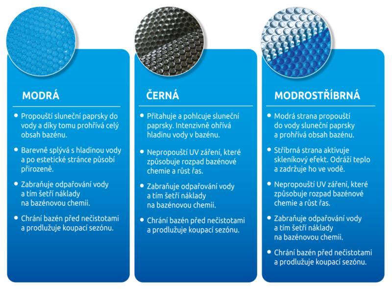 - Prepúšťa slnečné lúče do vody a vďaka tomu ohrieva celý obsah bazéna.