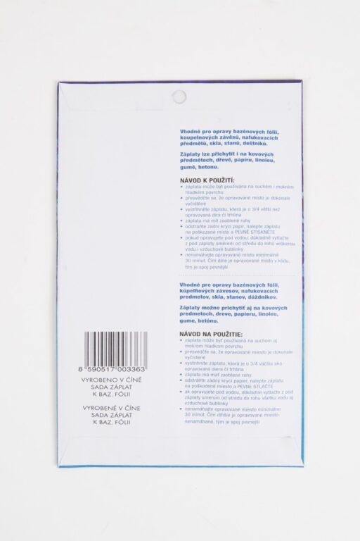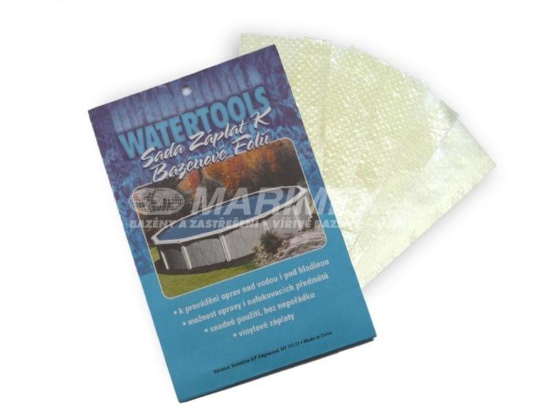 Sada záplat na bazénové fólie. Na vykonávanie opráv nad vodou aj pod hladinou. Možnosť opráv aj nafukovacích predmetov.Na vykonávanie opráv nad vodou aj pod hladinou
