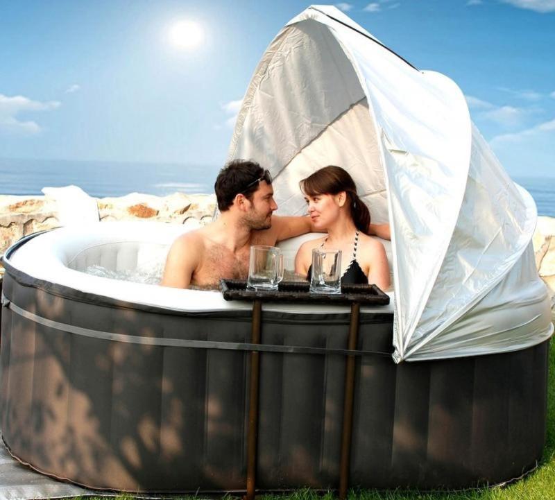 Instalace slunečníku je velmi snadná - jednoduše se upevní po obvodu vířivky pomocí gumového popruhu. Rozměry: