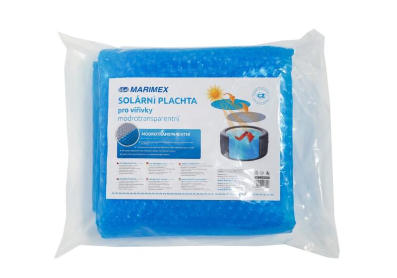 Sluneční paprsky prostupují solární plachtou a ohřívají vodu bezprostředně pod hladinou. Bublinky působí při slunečním záření jako čočky a tím zvyšují teplotu vody. V noci zamezují odparu vody, chemických prostředků a ochlazování vody. Solární plachta také částečně chrání proti spadu nečistoto do vířivky. Solární plachta je vyrobena z modro-transparentní bublinkové tepelně izolační plachty. Zobrazit celý popis
