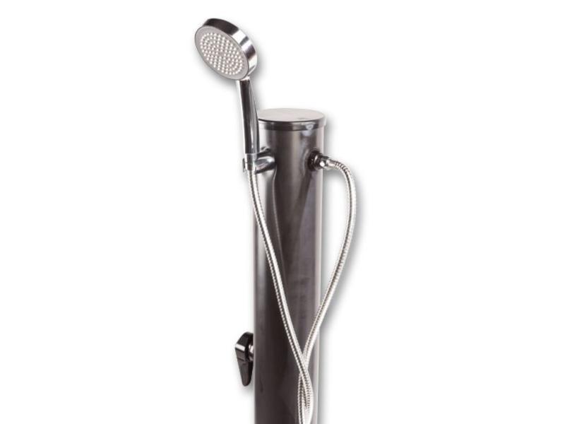 • Tato solární zahradní sprcha je vhodným doplňkem všech typů rodinných bazénů, výhodným, levným a pohodlným zdrojem teplé užitkové vody u rekreačních objektů, v zahrádkářských koloniích, u malých sportovních zařízení a v zahradách rodinných domů. Výhodou této solární sprchy je její lehká přenositelnost – sprchu nemusíte kotvit do země, pouze ji postavíte kamkoliv do zahrady, připojíte na vodovodní řád a můžete se sprchovat.