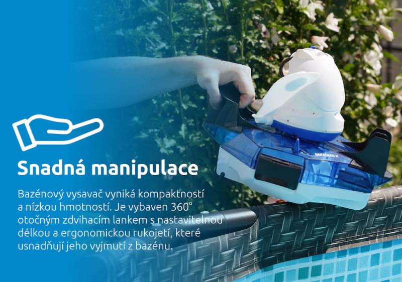 • ergonomická rukojeť - usnadňuje vyjmutí vysavače z bazénu