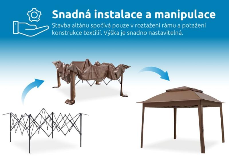 - 1. roztáhnete rám altánu a instalujete plachtu