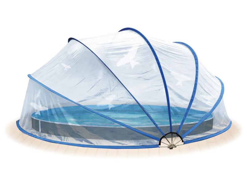 Zastřešení je možné otevírat, zavírat a sklápět podle potřeby. Z nadzemního bazénu snadno vytváří krytý bazén a zabraňuje nechtěnému vniknutí dětí a zvířat do vody.