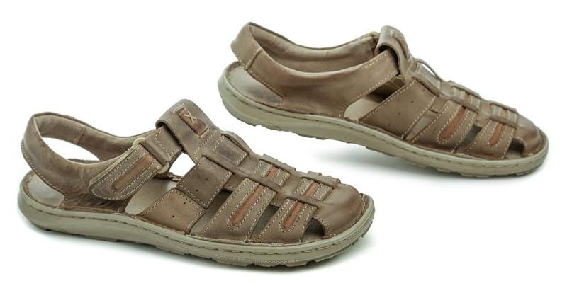 Pánská letní vycházková obuv typu sandály s plnou špičkou se zapínáním na pásek se suchým zipem.