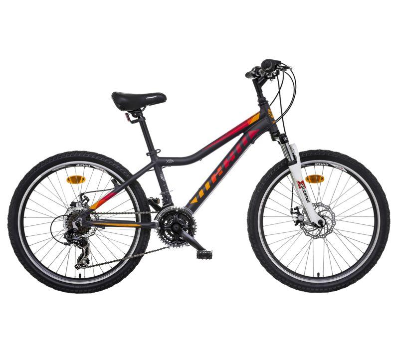 24" MAYO BASIC DISC ,horský jazdný bicykel s odľahčeným UNI-style rámom (zliatina hliníka AL6061),vhodné pre deti od 8-12 rokov, odpružená predná SUNTOUR M3010 AL , Osadenie SHIMANO TOURNEY, radenie SHIMANO REVOSHIFT, 18 prevodov, dvojité ráfiky, brzdy SACCON DISC, zapuzdrená stredová os, ALLOY náboje kolies, plášte MITAS• Rám: Aluminium AL6061, TIG welding, down tube bended Bi-Axial shape, top tube UNI-Style bended shape, S-Type seat stays, oversize headparts, veľkosť 13"